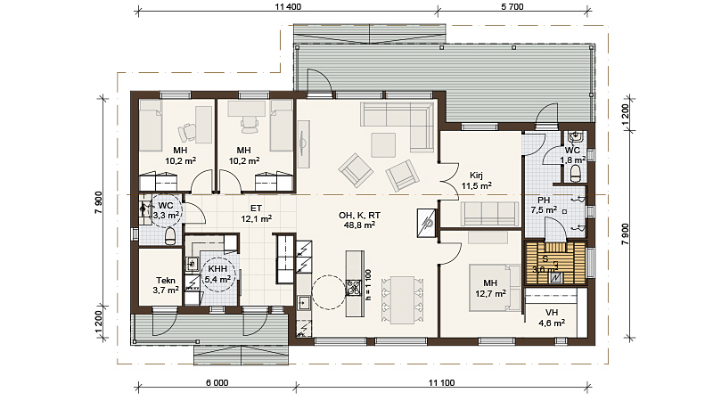 | Huoneita | 5H+K+S |